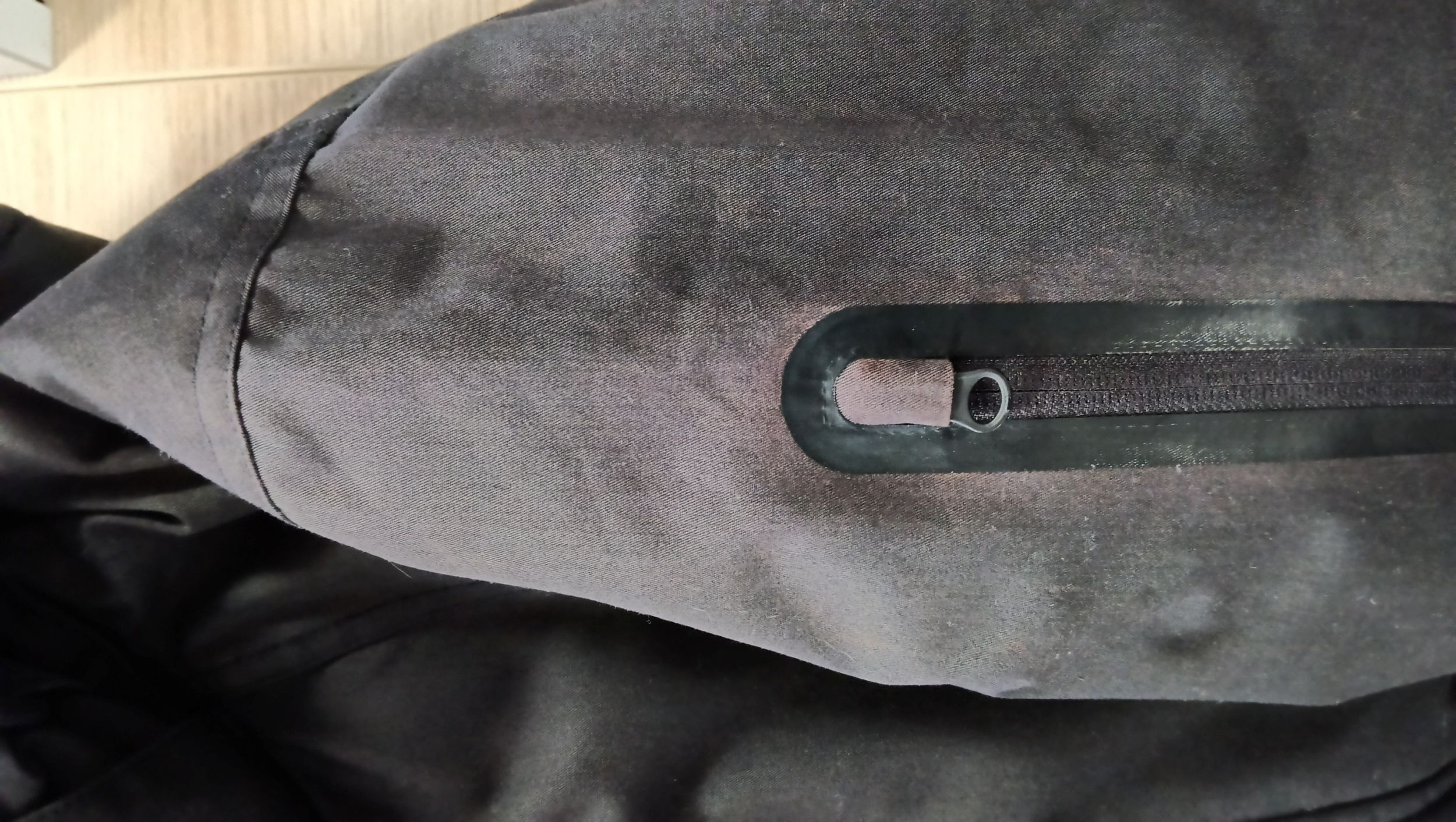 Es handelt sich hierbei um B-Ware. Die Jacke hat Verfärbungen an Schulter, Oberarm und Kragen