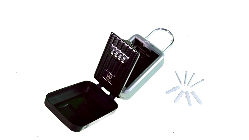 Mitgeliefert werden Schrauben und Dübel, damit Du den Key Lock auch an Wänden befestigen und als Wandtresor nutzen kannst (z.B. für Ferienhausvermietungen).